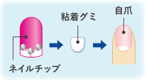 ※ネイルチップと爪の間に隙間があると粘着力が落ちます。 隙間は粘着グミを重ね貼りして埋めてください。
