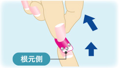 ネイルチップを指の先端側へひっぱります。